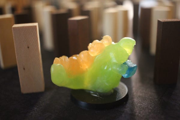 I’m writing this ruleset for a one page rules game jam in the NonCombatTabletop discord server and I’ve been documenting progress there as well. But even though the requirements of the jam ask for the game to fit on a single side of a 8.5x11 page (which Careful Kaiju does!) I think I’ll still make a little zine-size game book with alternative play modes, little crafting tutorials, and some cute illustrations. I had enough fun with Smol Fairy tonight that I think it’s totally worth putting the extra love and design time towards a full-size version of Careful Kaiju, along with some more 3D printable sculpts. Smol Fairy talked me into sculpting my version of Polly.